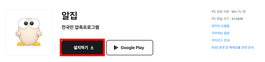 - 모바일에서도 알집 무료 다운로드 가능 (안드로이드 전용 앱)
