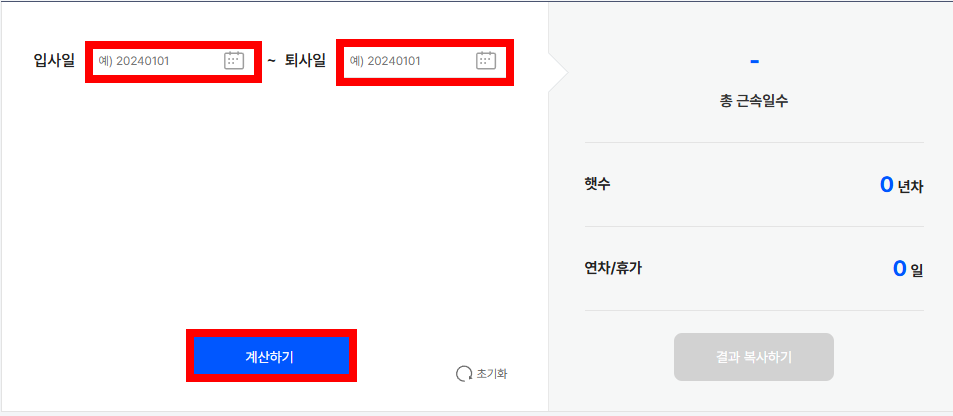 - 현재 재직 중이라면 퇴사일 대신 오늘 날짜를 선택해 현재까지 경력 계산