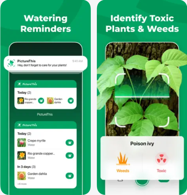 - PictureThis — 방대한 데이터베이스와 정확한 식물 인식률로 많은 사용자에게 인기. 꽃, 나무, 잎사귀 등 다양한 식물 인식 가능.