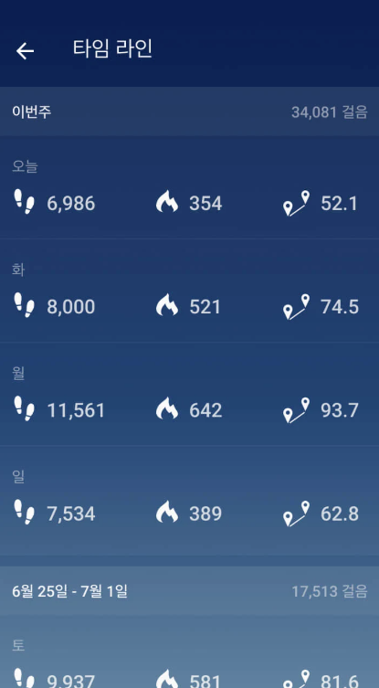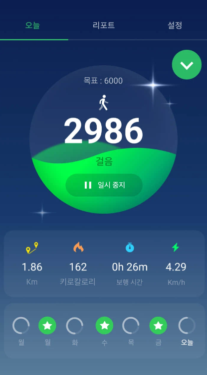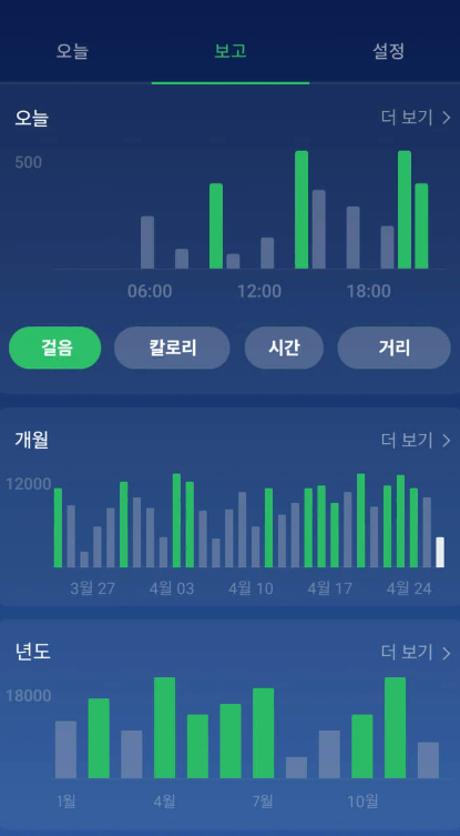 - 매일 걸음 수와 거리, 칼로리를 기록하면서 변화 추이를 확인합니다.