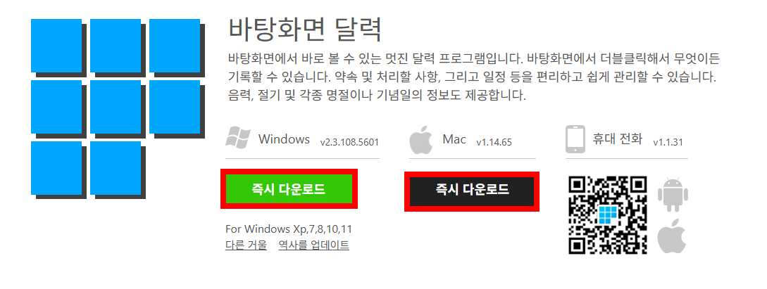 달력을 다운로드한 후 바탕화면 캘린더 위젯과 함께 설치하면 더 강력한 일정 관리 기능을 사용할 수 있습니다.